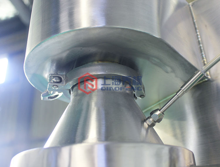 壓力噴霧干燥機(jī)機(jī)長(zhǎng)時(shí)間運(yùn)行或因操作不當(dāng),部分設(shè)備內(nèi)會(huì)出現(xiàn)集料而影響正常運(yùn)行,此時(shí)需停止工作進(jìn)行清洗。對(duì)于干燥塔內(nèi)集料的清理,應(yīng)打開(kāi)清掃門(mén),用長(zhǎng)把掃帚掃除漏斗形底部集料,打開(kāi)出料閥,用自來(lái)水沖洗塔內(nèi)。旋風(fēng)分離器內(nèi)集塵的清除,同樣需要打開(kāi)旋風(fēng)分離器,用掃帚清掃集料,必要時(shí)也需用水沖洗。對(duì)于袋式除塵器的清理,應(yīng)打開(kāi)控制開(kāi)關(guān),連續(xù)敲打,然后打開(kāi)清洗門(mén),敲打布袋除塵器,對(duì)噴霧干燥機(jī)zui后更換過(guò)濾袋。對(duì)于料漿管路系統(tǒng)的清理,應(yīng)打開(kāi)雙向過(guò)濾器的排污閥,清洗過(guò)濾器濾網(wǎng)和管路,然后打開(kāi)料泵,以水代料,清洗泵管、穩(wěn)壓包及管道。