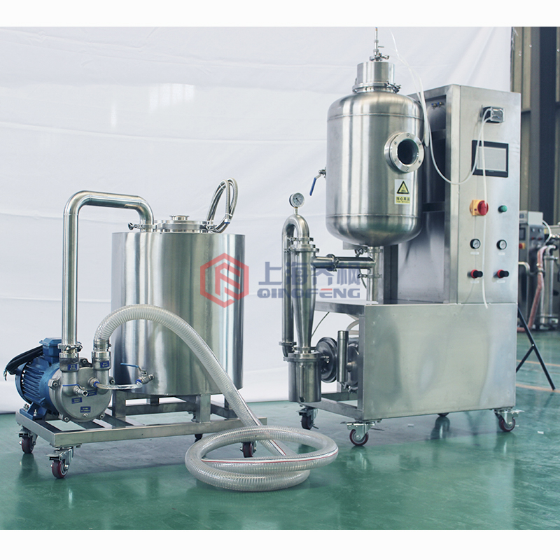 1)QFN-VSD-1 實驗型真空噴霧干燥機噴霧干燥整個干燥過程在真空環境里完成,大大降低了物料干燥溫度,解決了熱敏性物料含糖物料生物材料噴霧干燥的難題。